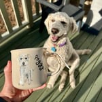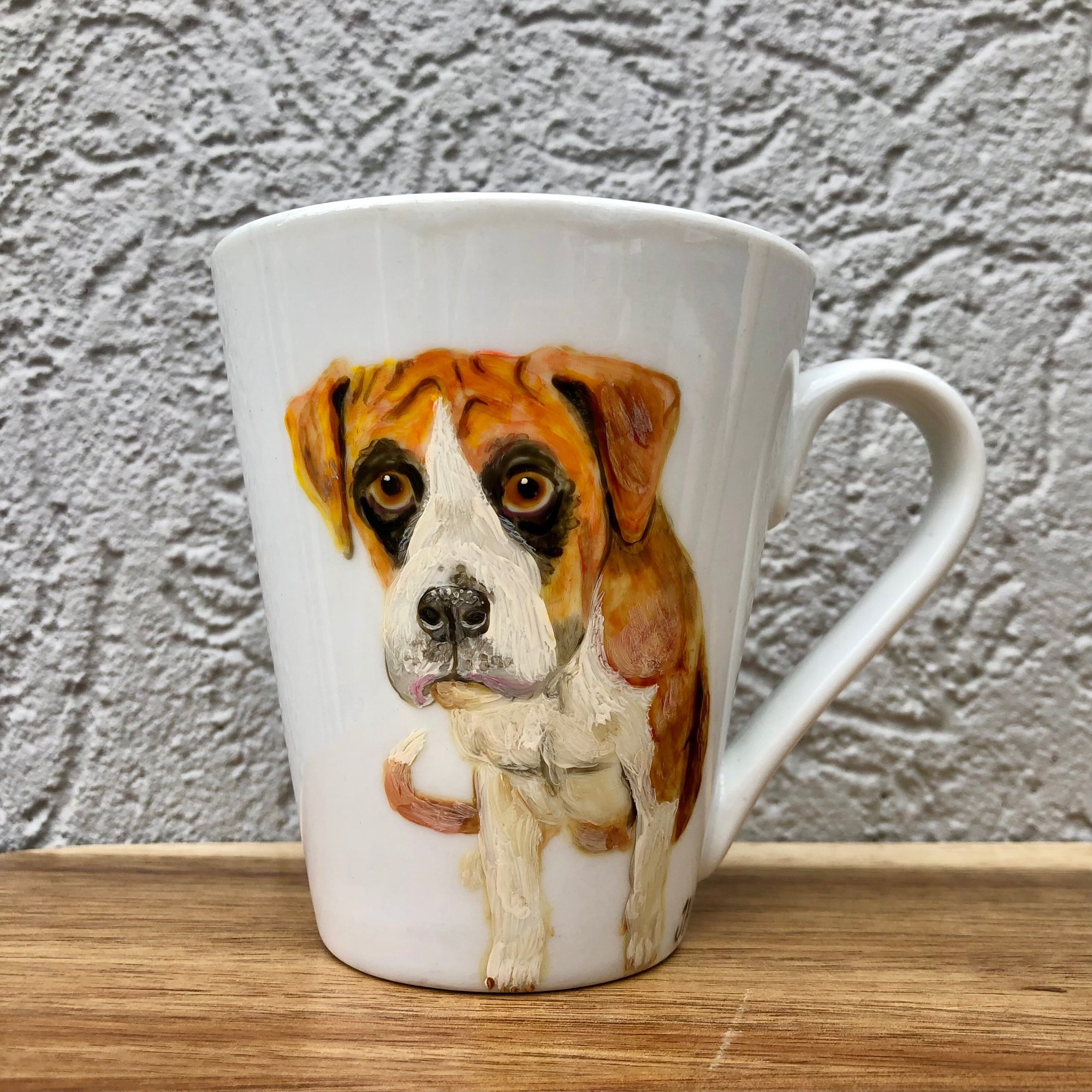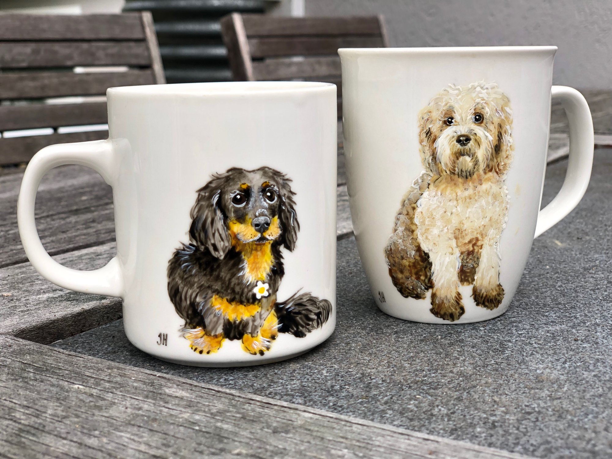 Personalised pet hand painted on an up-cycled, ceramic mug.