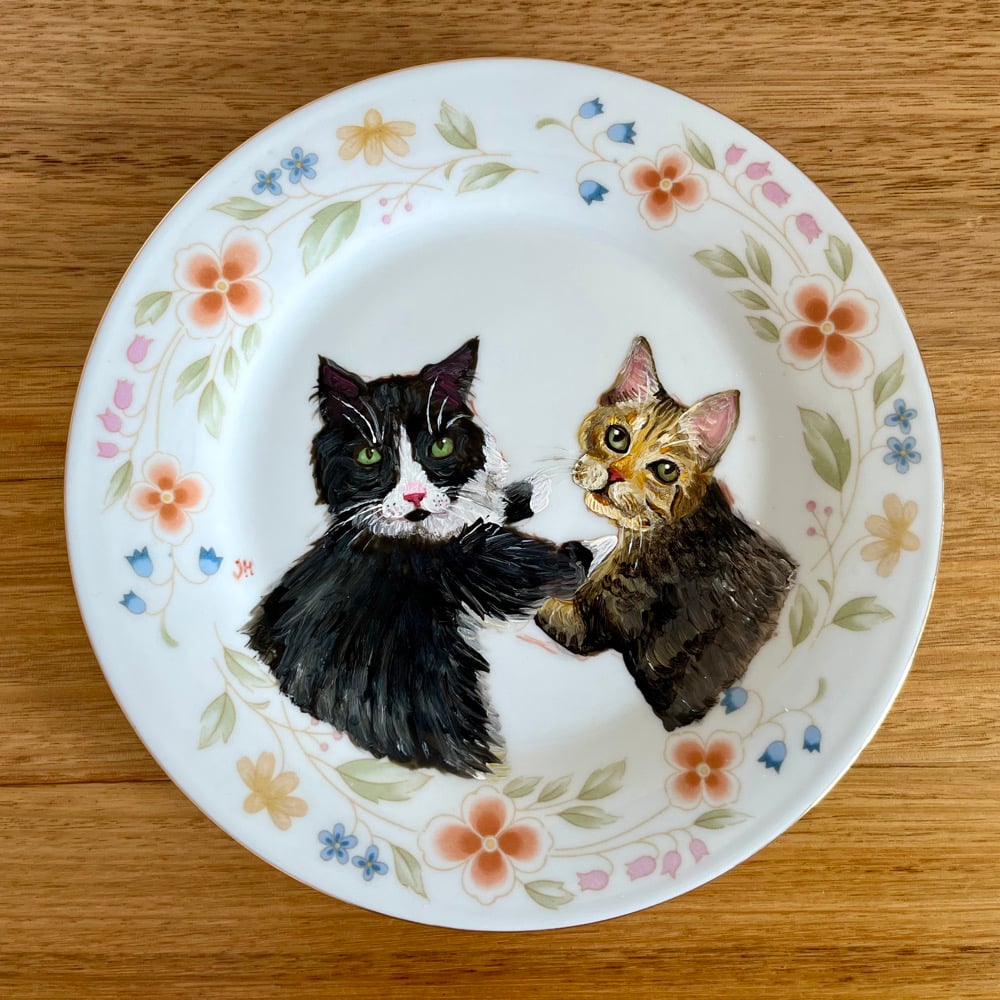 Personalised portrait hand-painted on an up-cycled, ceramic plate.