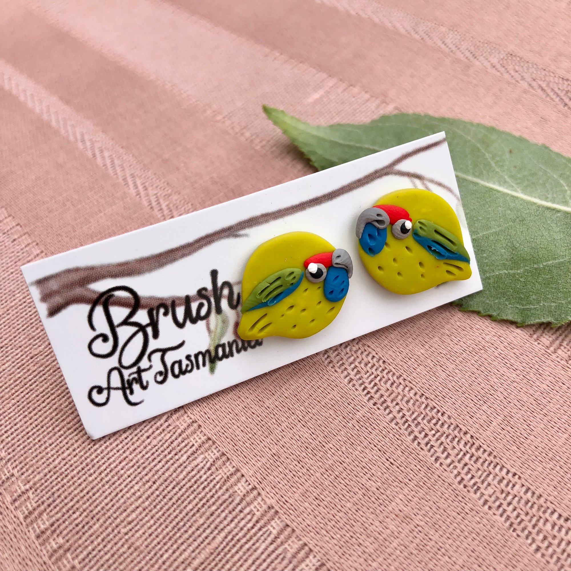Handcrafted Green Rosella lightweight polymer clay earrings 🍃