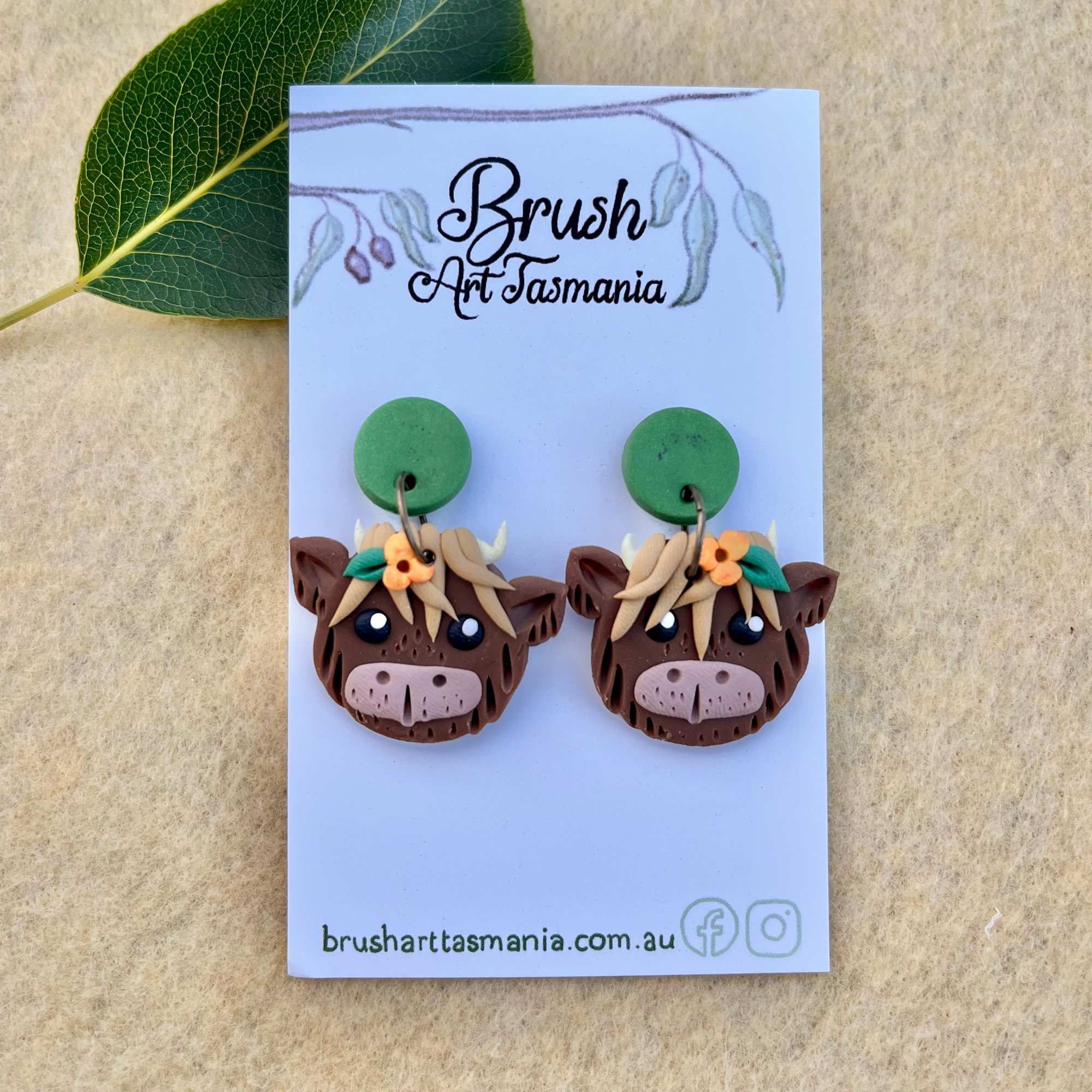 Handcrafted Highland Cow polymer clay earrings 🍃