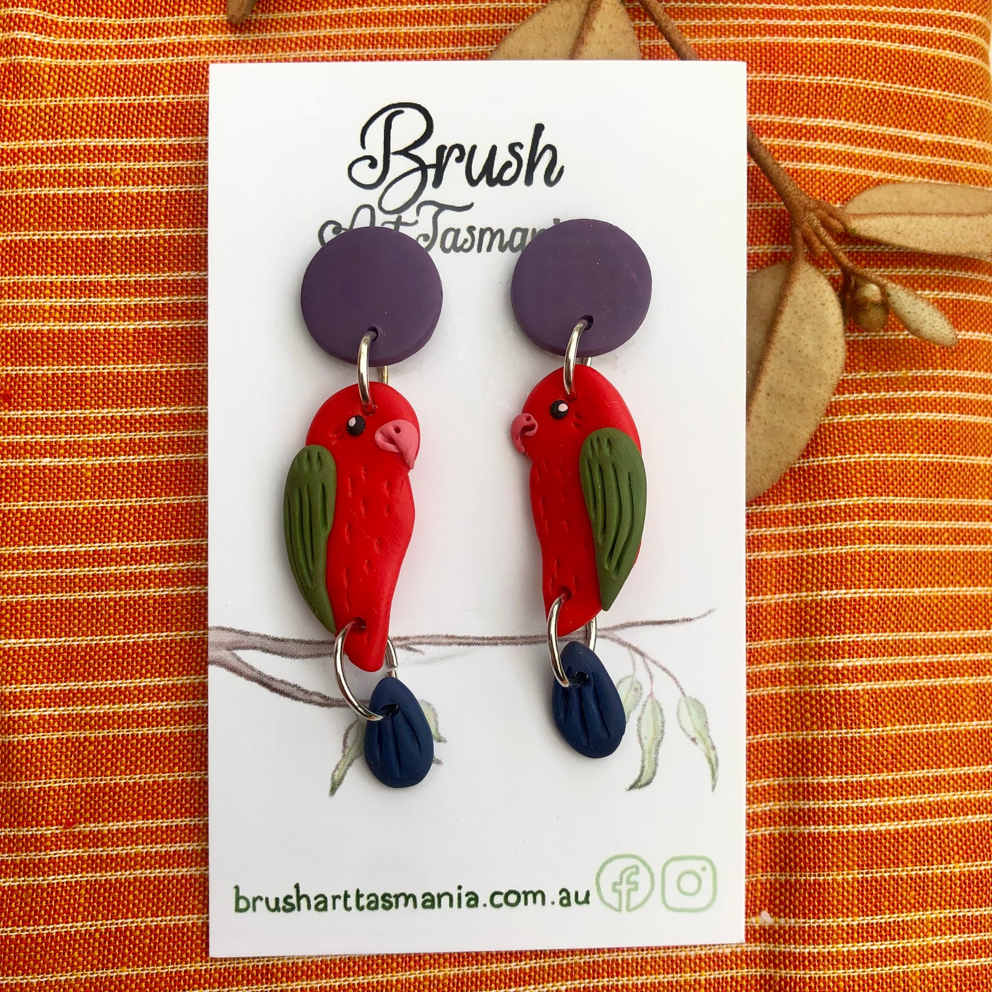 Handcrafted Male King Parrot lightweight polymer clay earrings 🍃