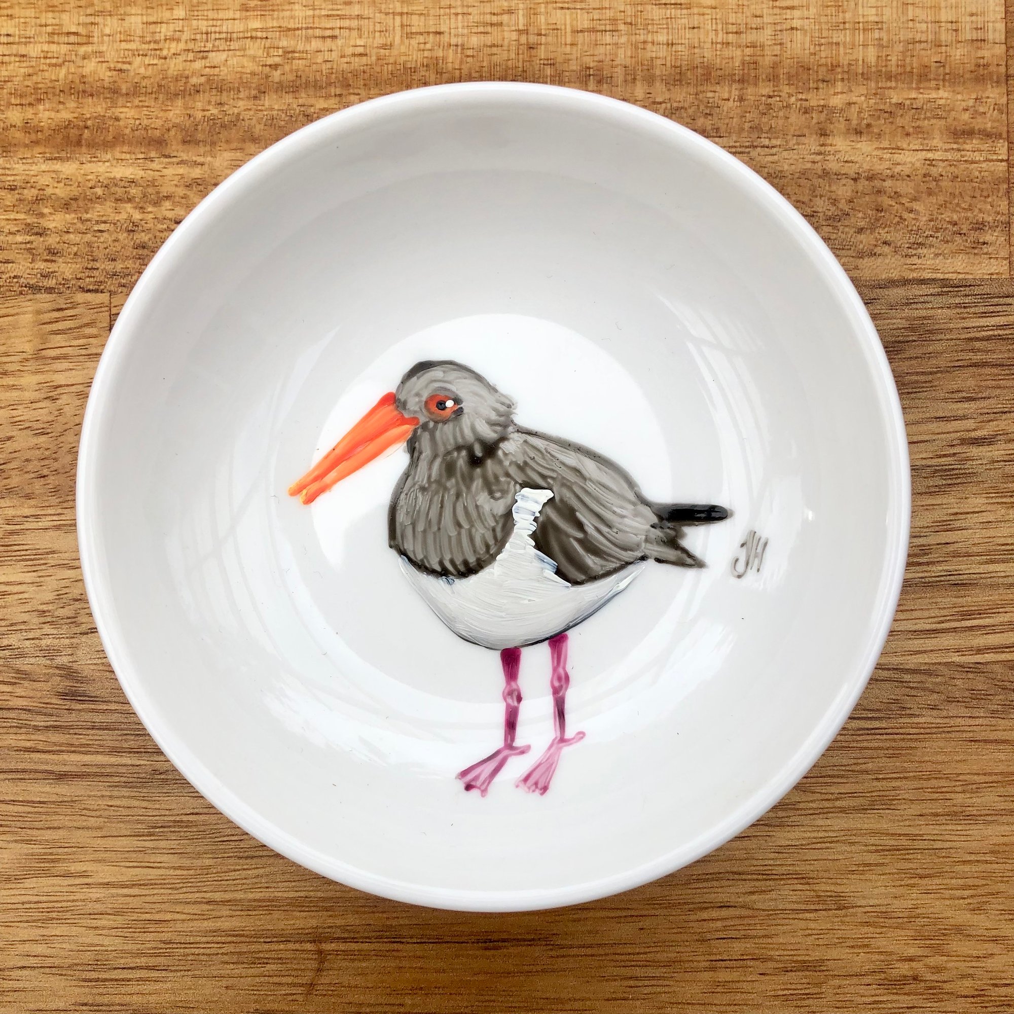 Pied Oystercatcher on a white ceramic trinket dish 🌊 Hand-painted by Tasmanian Artist Jenae Hall.