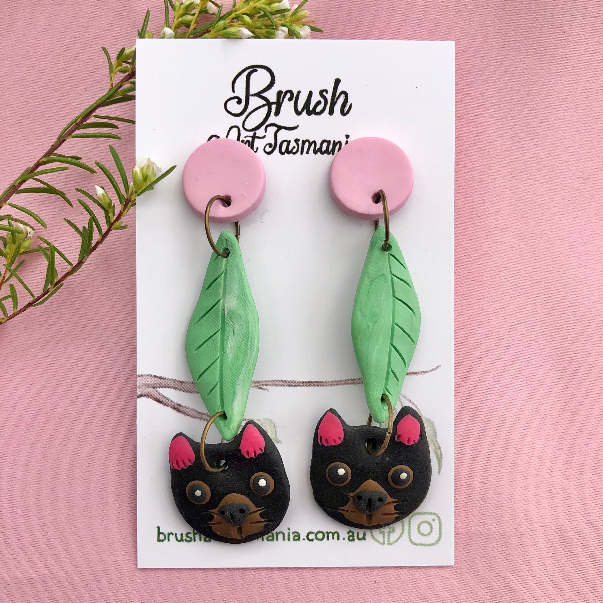 Handcrafted Tasmanian Devil polymer clay earrings 🍃