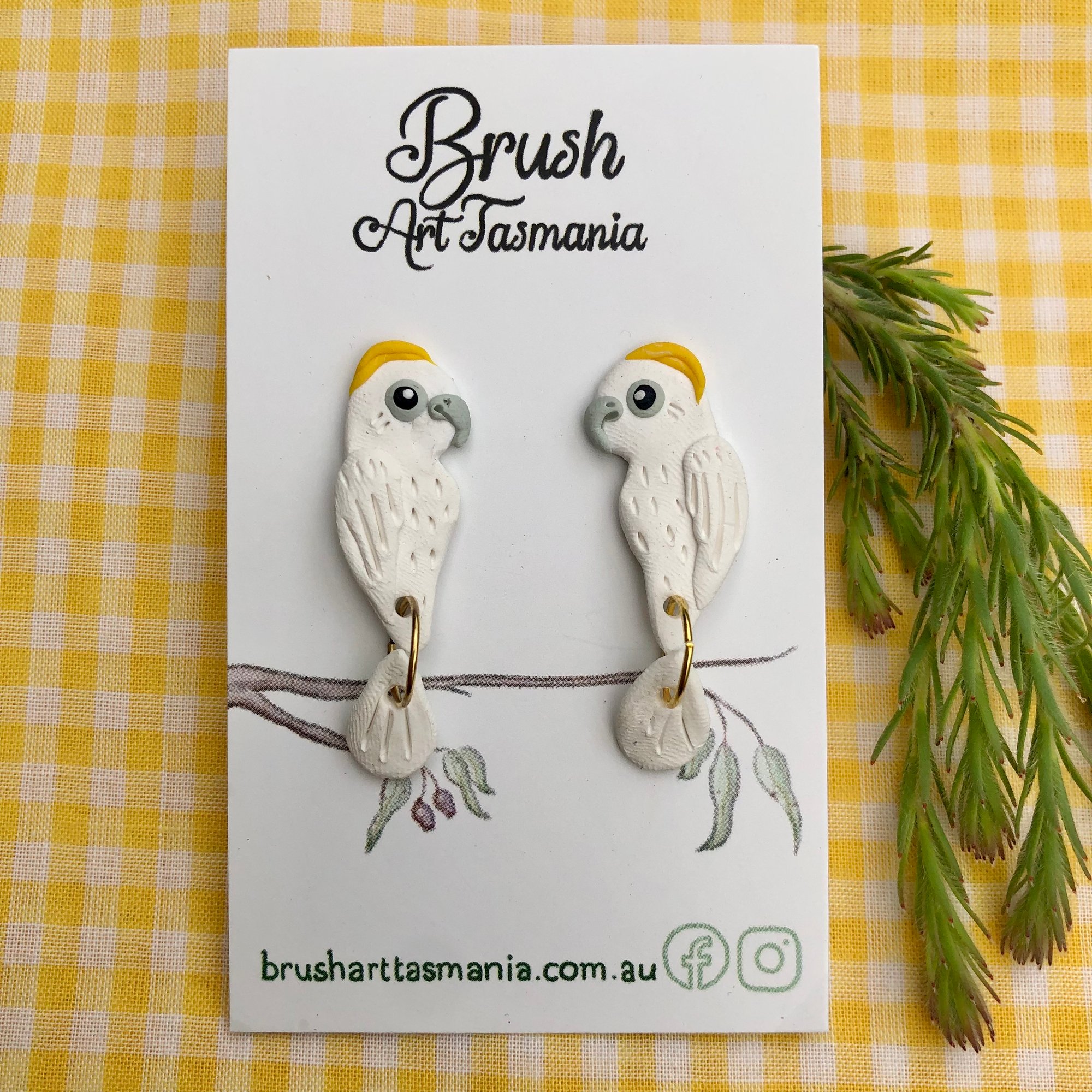 Handcrafted Sulphur Crested Cockatoo lightweight polymer clay earrings 🍃